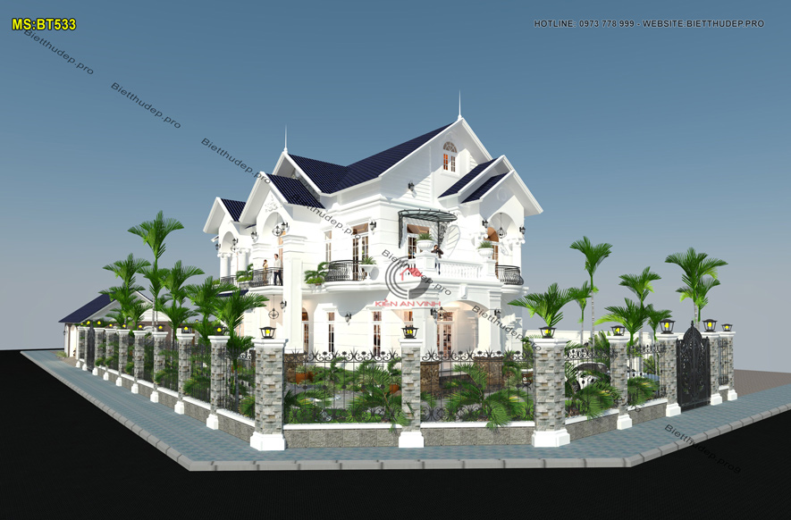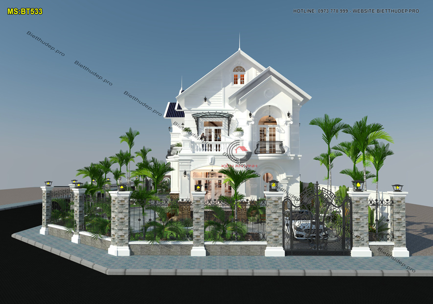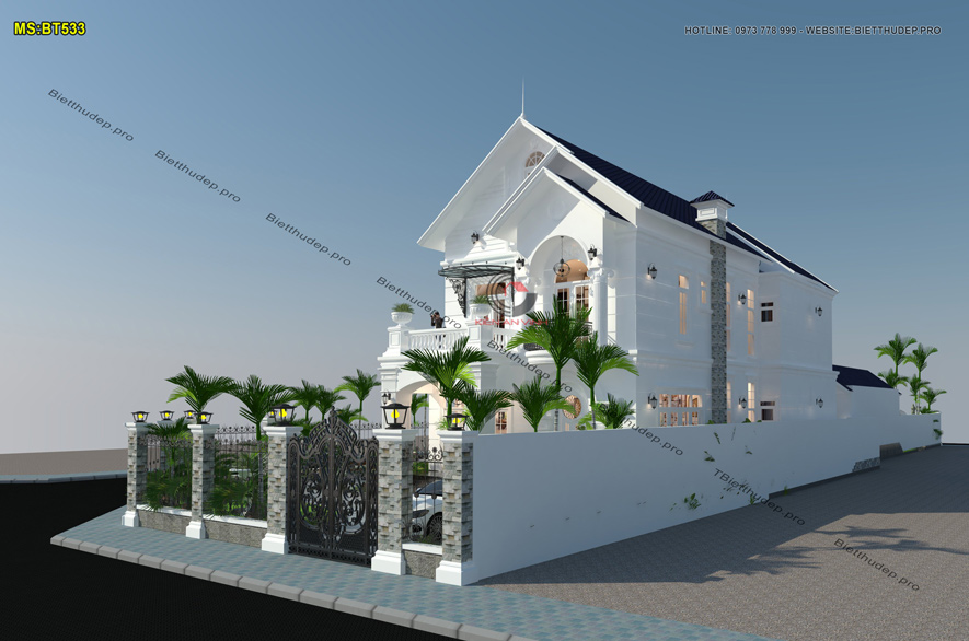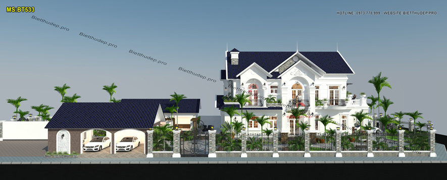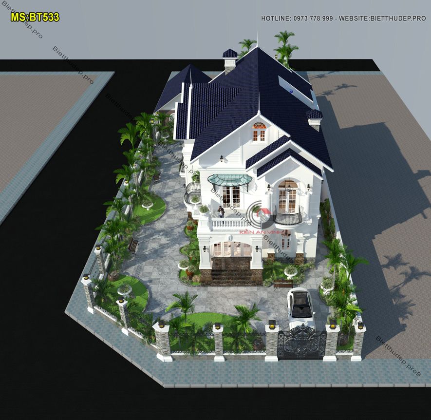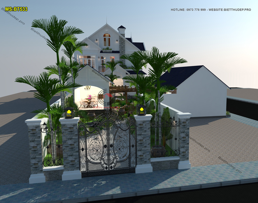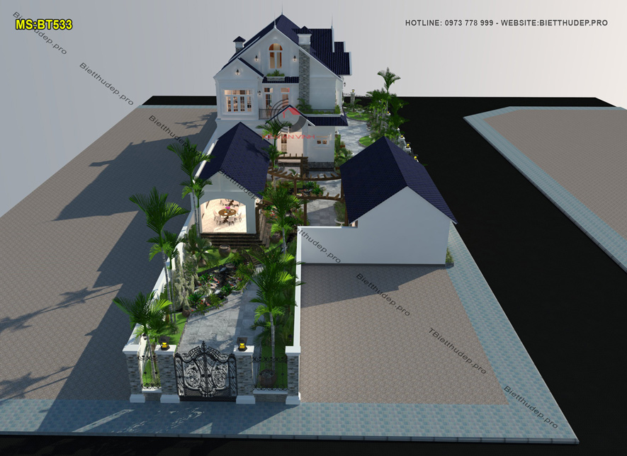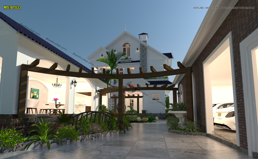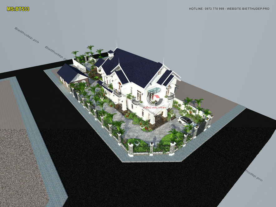 Bản vẽ thiết kế nhà biệt thự dạng mái thái tạo nên vẻ đẹp thẩm mỹ đồng thời đảm bảo khả năng thoát nước mưa hiệu quả. Nên cũng vì đó lại được nhiều chủ đầu tư ưa chuộng. BT533 – mẫu biệt thự 2 tầng mái thái có sân vườn 2 mặt tiền là một điển hình.