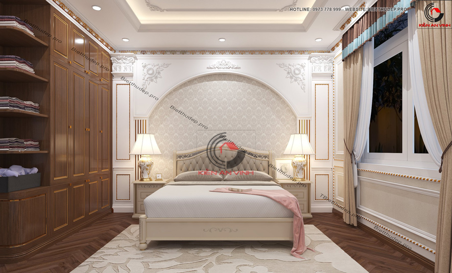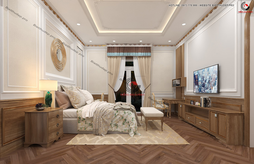 Trước hết là phần mái hình dáng chóp nhưng không thô cứng, ngược lại còn mang nét đẹp mềm mại. Ngoài ra khả năng chống nóng và thoát nước cực tốt, và tính thẩm mỹ cao. Khi kết hợp với thiết kế 2 tầng mang phong cách tân cổ điển này, phần mái thái không chỉ tạo điểm nhấn cho ngôi nhà mà còn giúp không gian sống luôn thông thoáng và mát mẻ.