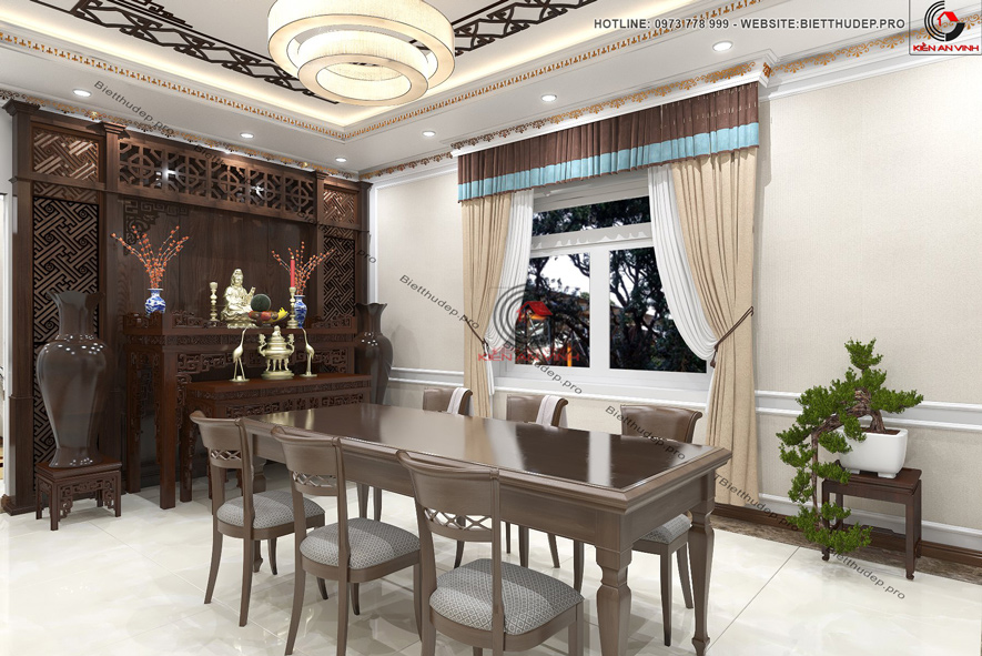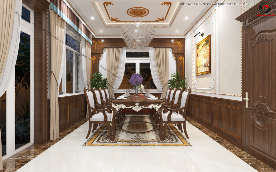 Bên ngoài thời thượng, bên trong ấm cúng là tiêu chí của bản thiết kế biệt thự 2 tầng mái thái có sân vườn 2 mặt tiền này. Có thể thấy mối liên kết các phòng tạo nên nét đẹp đồng bộ và không bị rời rạc. Vừa toát lên được thẩm mỹ sang trọng, vừa mang lại sự bề thế chuẩn chỉnh.