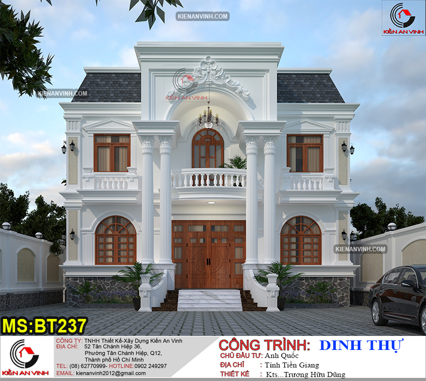 Mẫu thiết kế biệt thự 2 tầng bán cổ điển 2018